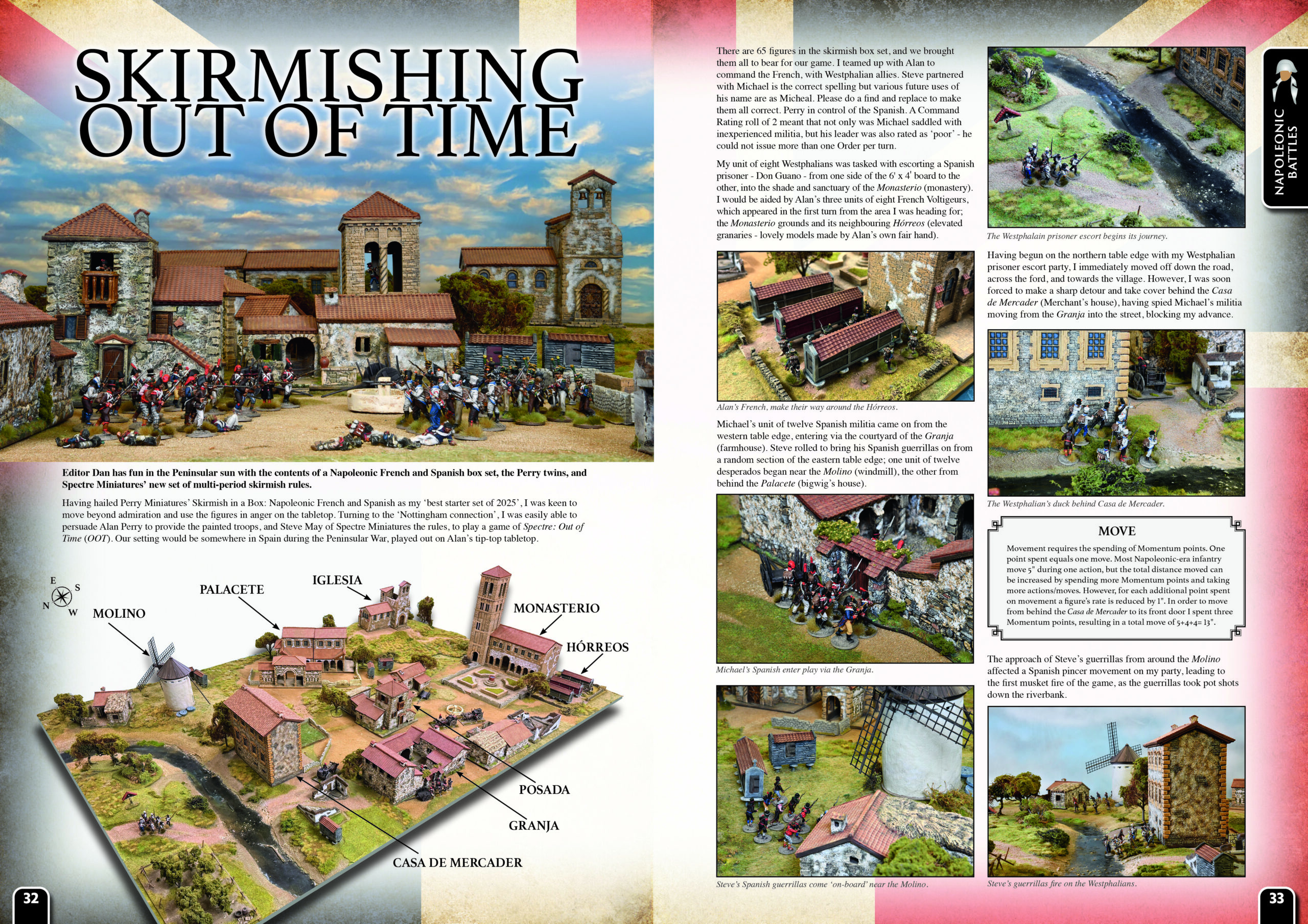 Editor Dan has fun in the Peninsular sun with the contents of a Napoleonic French and Spanish box set, the Perry twins, and Spectre Miniatures’ new set of multi-period skirmish rules.